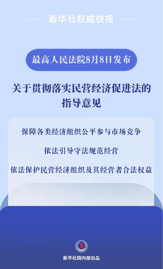 8月8日,受欢迎的最高法院发布了有关实施“中华民国私人经济促进法”的指南,并努力进一步完善判断规则,改善工作机制,解决实际问题并保证正确实施和统一的法律应用。领导人的意见已彻底实施了促进私人经济的法律,并提出了25个要素,以促进五个方面的稳固发展。一般要求,法律平等待遇,法律行动的东方行动和标准化,公平司法和提高对公平的司法系统和机制的饮食。它的目标是解决面临私人经济发展的问题,并为私人经济的稳固发展提供更强大的法律保证。记者:Qi Xinhua新闻社在日本制作的Luo Sha和Qi Qi海报
